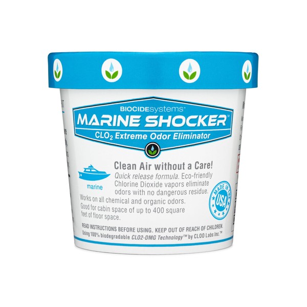 Biocide Systems Marine Shocker, Quick Release Odor Eliminator for Boats, Eco-Friendly Chlorine Dioxide Odor Bomb for Removing Mildew, Fish, & Food Smells, Up to 250 Cubic Feet of Interior Space
