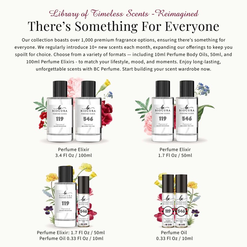 - [ Affordable Luxury ] Discovering new fragrances doesn't have to be expensive. Say farewell to high-priced designer fragrances and hello to BC Perfume. Get the scents you love at a fraction of the cost, without sacrificing quality. Enjoy the smart choice of affordable luxury with BC Perfume. We offer a variety of bottle sizes, both in body oil and perfume spray, so you can find the perfect option for you. Whether you're looking for a small sample or a larger bottle, BC Perfume has you covered.