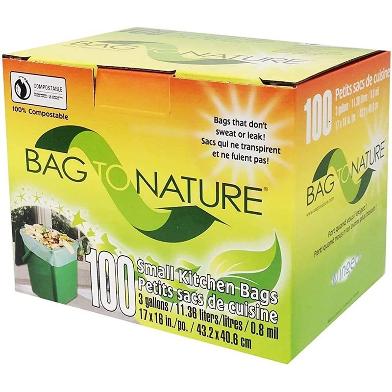 - 100% Biodegradable, compostable kitchen bags.