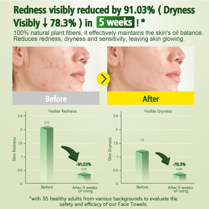 - NATURAL SOFTNESS & DEEPLY ABSORBENT: Our face towel is made of natural plant fibers, 3D honeycomb structure increases water absorption by 50%, quickly adsorbs grease and moisture while keeping the surface dry and cool, with zero irritation on contact with the skin