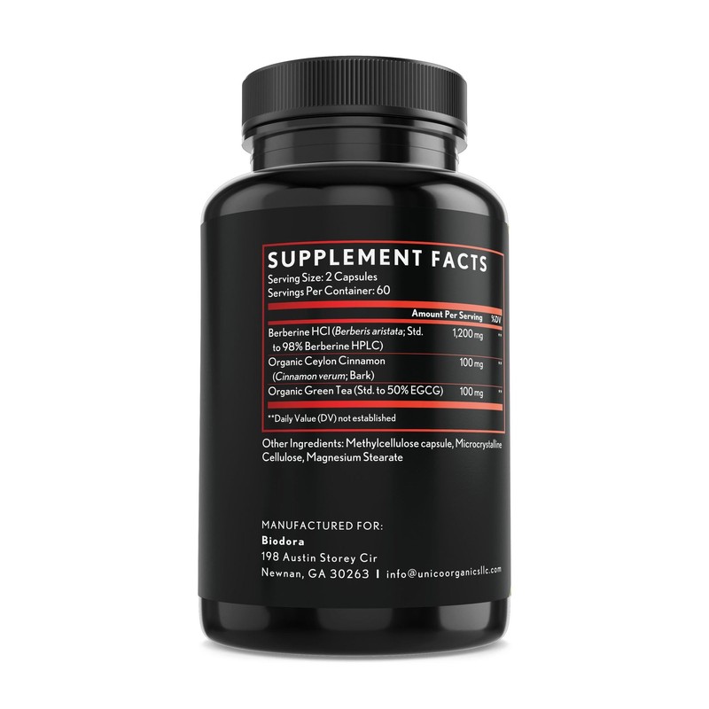 - Berberine Advanced - Biodora has Created the Ultimate formula to come with 1200mg of pure Berberine 100mg of organic Ceylon Cinnamon, 100mg of Organic Green Tea Extract