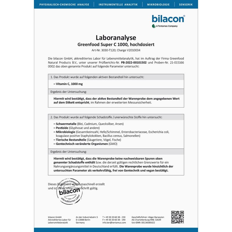 Super C 1000 contains pure vitamin C as well as acerola and rose hip. The fruits of these two plants are real vitamin C bombs. They contain more than 20 times as much vitamin C as citrus fruits. Together with the bioflavonoids, they promote the absorption of vitamin C from the digestive tract and ensure long-lasting vitamin C levels in the blood.