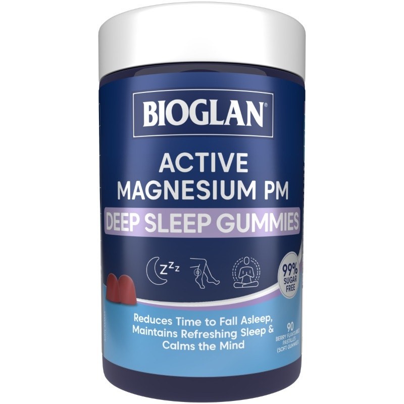 That's why we developed BIOGLAN Active Magnesium PM Deep Sleep Gummies. These pre-bedtime berry flavoured gummies are formulated to help your body and mind transition into a soothing sleep.