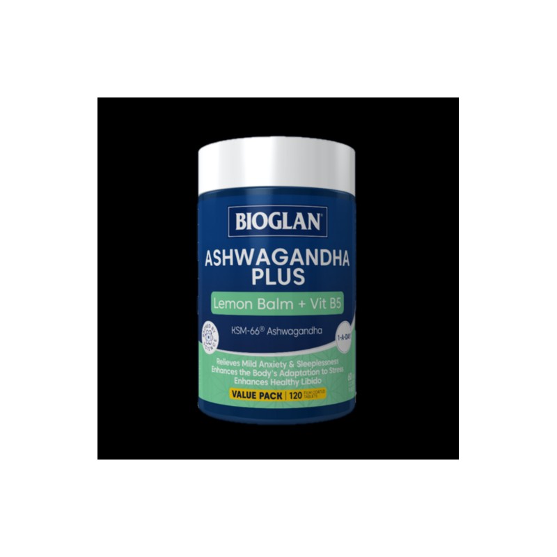 Bioglan Ashwagandha Plus is formulated with organic, clinically researched KSM-66® Ashwagandha. Plus Lemon Balm and Vitamin B5, in a convenient 1-a-day dosage.