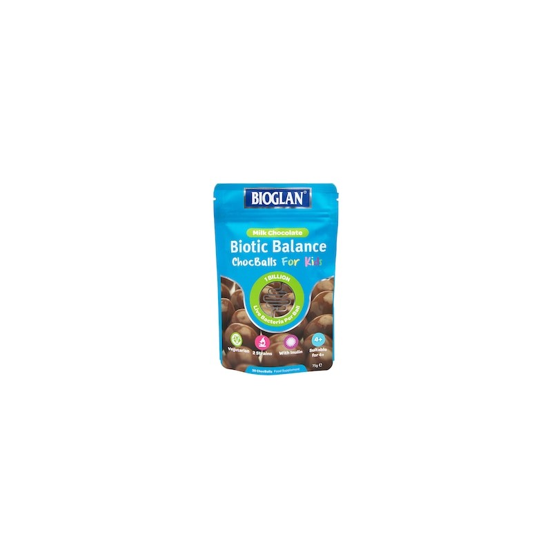 A combination of premium chocolate, live bacteria and fibre all rolled into one milk chocolate ball. Bioglan Biotic Balance ChocBalls are the tasty way to include live bacteria in your family's everyday diet. Each ChocBall contains 2 high quality live strains of bacteria in addition to a great source of fibre, and is suitable for children ages 4+.