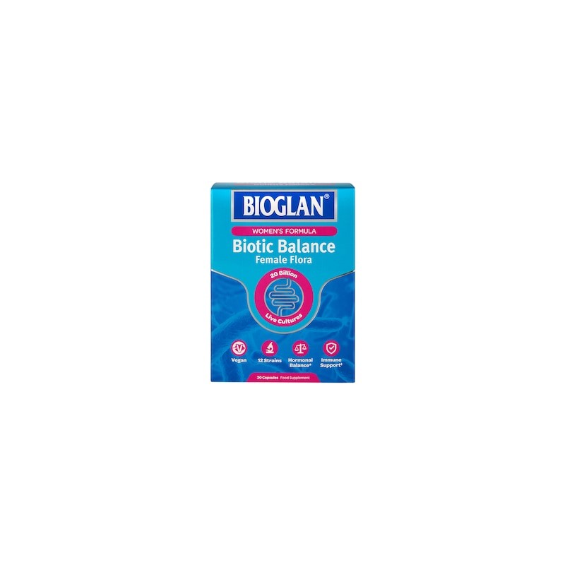 Bioglan Biotic Balance Women Capsules contains 20 billion live good bacteria from 12 specially selected strains that naturally occur in the intestinal and genital tracts of women. It is especially high in Lactobacilli, the most prevalent good live bacteria found in a healthy female body. It also contains chloride which contributes to normal digestion by the production of hydrochloric acid, folic acid which contributes to the normal function of the immune system and vitamin B6 which contributes to the healthy regulation of hormonal activity. The easy-to-swallow capsules are room temperature stable meaning no refrigeration is required.