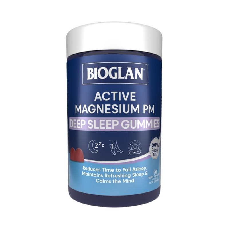 That's why we developed BIOGLAN Active Magnesium PM Deep Sleep Gummies. These pre-bedtime berry flavoured gummies are formulated to help your body and mind transition into a soothing sleep.