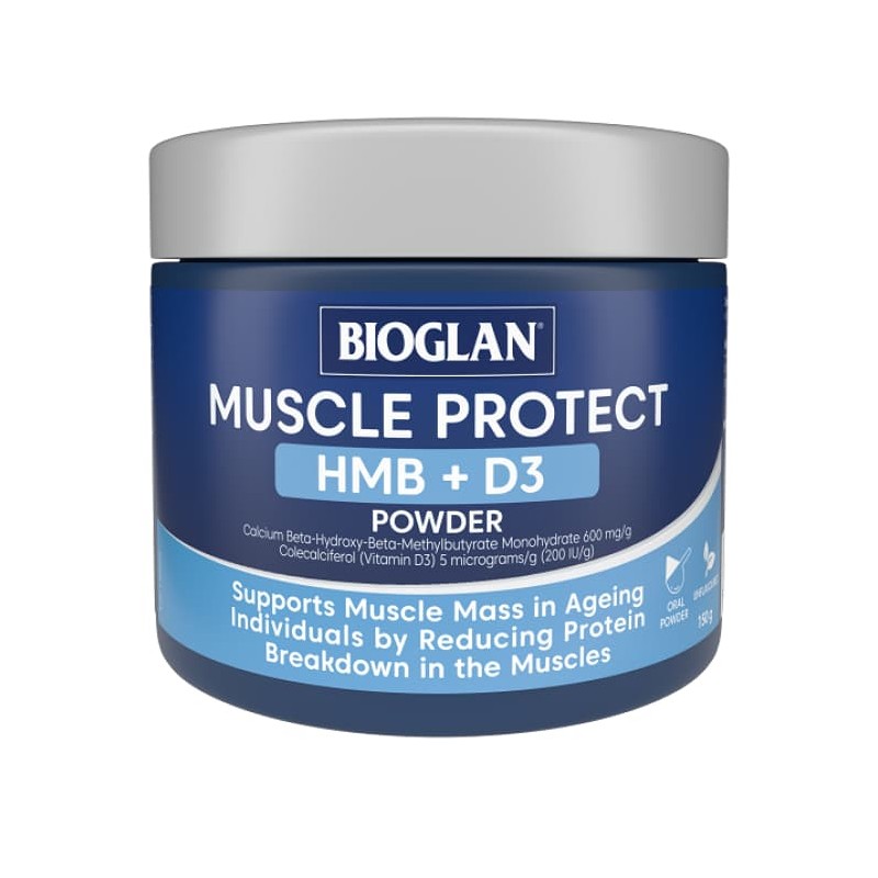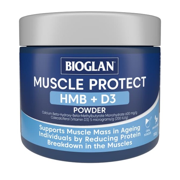 Bioglan Muscle Protect HMB + D3 Powder provides 3g myHMB® and 1000IU of Vitamin D3 per 1 scoop to maintain muscle mass.