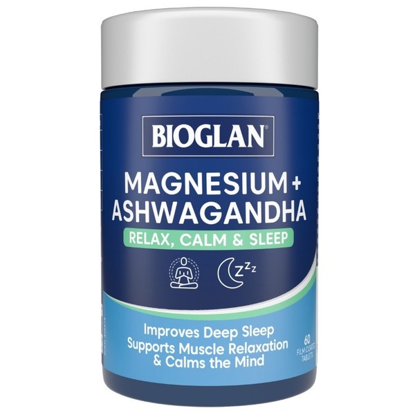 Bioglan Magnesium + Ashwagandha combines highly absorbable Magnesium glycinate with Shoden Ashwagandha and promotes a deep sleep so you wake up feeling refreshed.
