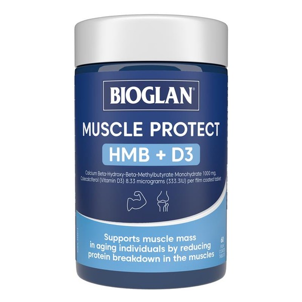 That's why Bioglan created Muscle Protect HMB + D3. Backed by science, HMB supports muscle health as you age by maintaining your muscle mass and muscle protein stores. Vitamin D increases the metabolism of calcium in your bones, so you stay stronger for longer.