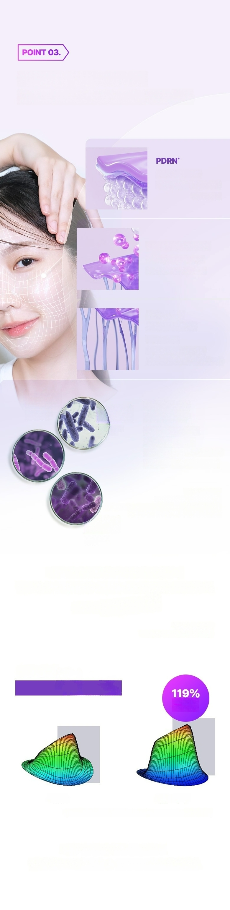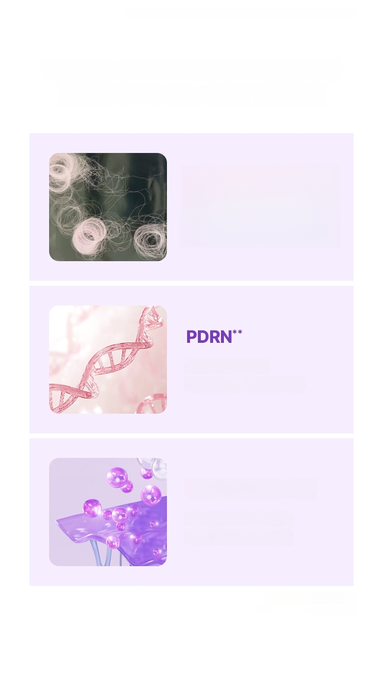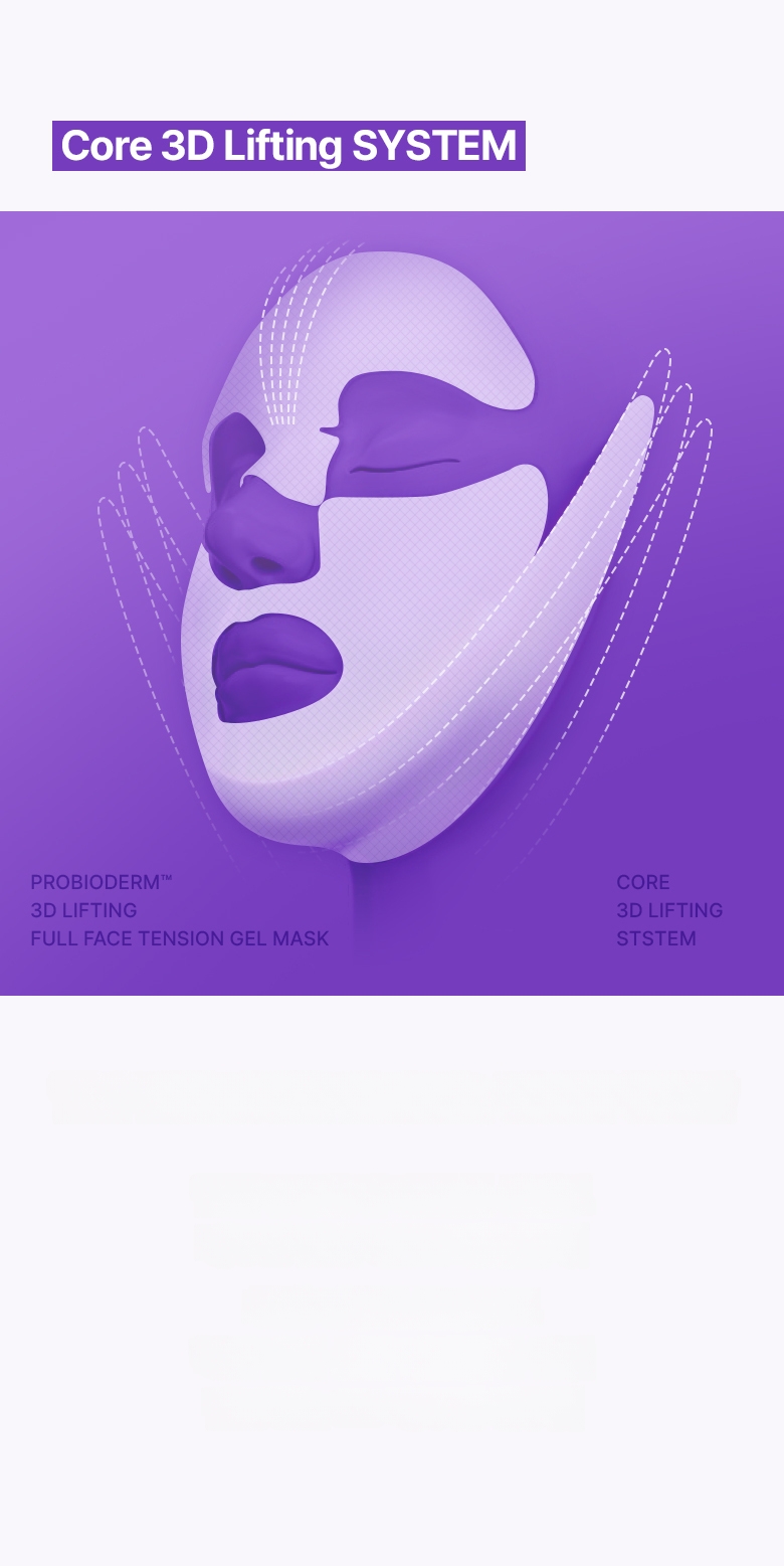 Uses 1,000 melting threads to support skin elasticity and lifting, with PDRN to help skin condition recovery. Contains 17 types of key peptides to help maintain skin elasticity. Contains proprietary patented ingredient PROBIODERM™ targeting skin elasticity structure.