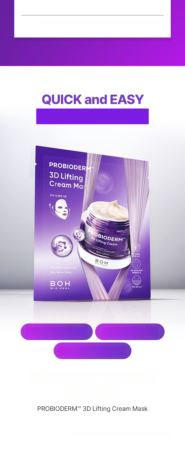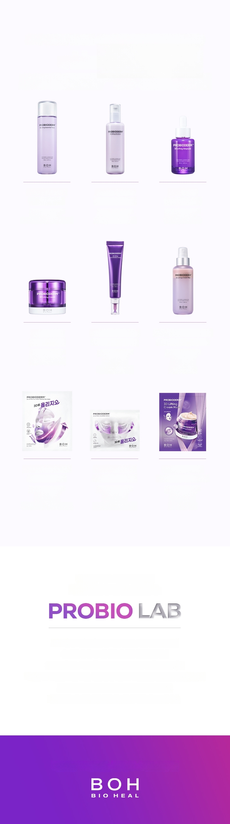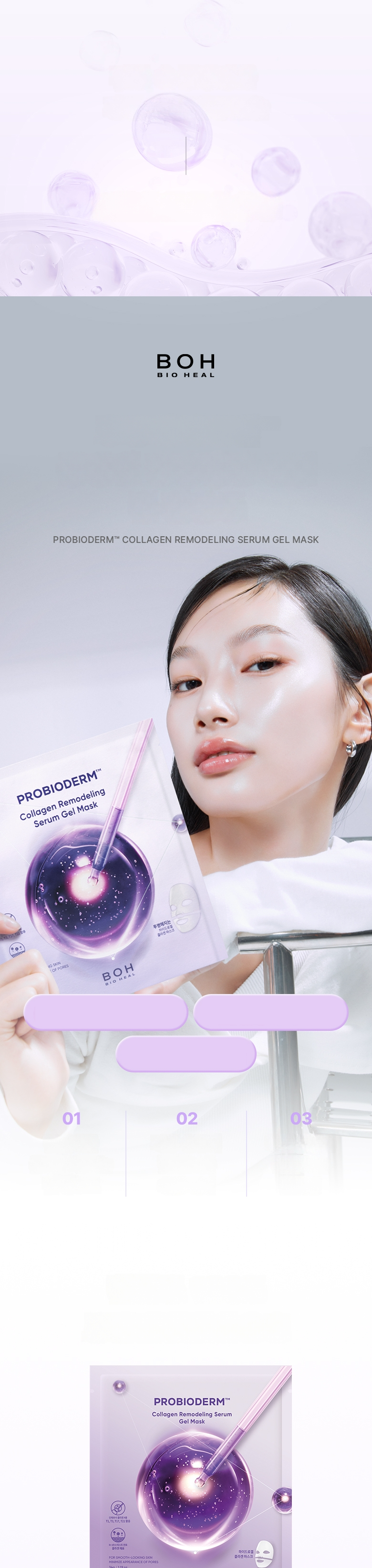 Uses 1,000 melting threads to support skin elasticity and lifting, with PDRN to help skin condition recovery. Contains 17 types of key peptides to help maintain skin elasticity. Contains proprietary patented ingredient PROBIODERM™ targeting skin elasticity structure.