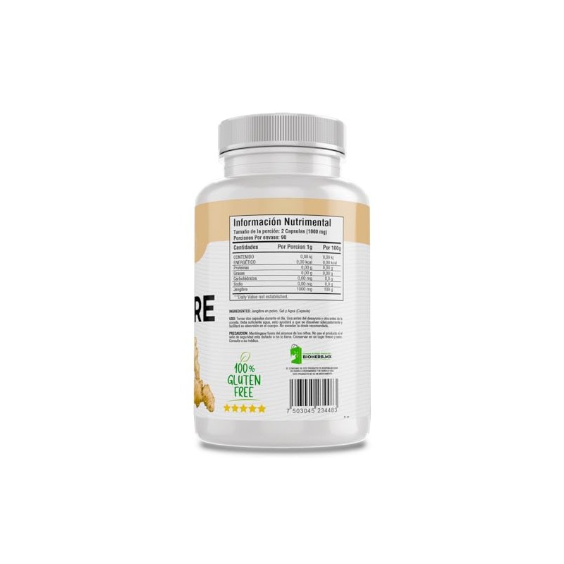 Acerca de este artículo Extracto Premium de Jengibre: Las cápsulas de Jengibre BioHerb contienen un extracto premium derivado de la potente raíz de jengibre. Te ofrecemos la esencia pura del jengibre, celebrada por sus propiedades naturales y beneficios para la salud. 180 Cápsulas para Uso Extendido: Con 180 cápsulas por envase, BioHerb garantiza que tengas un suministro amplio de Jengibre para un uso sostenido. Conviértelo en parte de tu rutina diaria para una vitalidad duradera. Item form : Jengibre 90 Dias Dosage form : Cápsula.