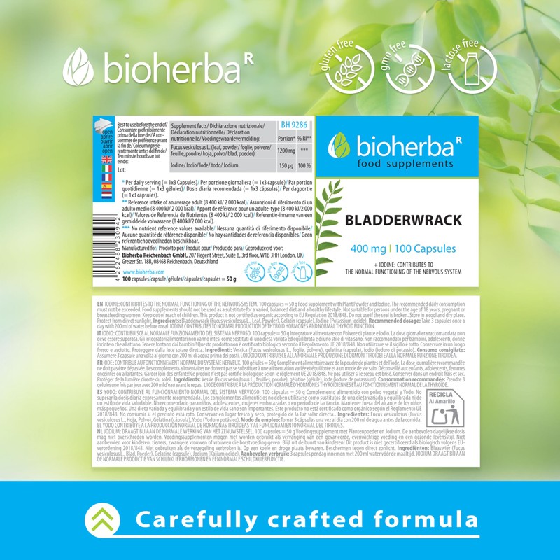 BIOHERBA BLADDERWRACK 400mg, 100 Capsules - Dive into Wellness with Bladder Wrack Powder in caps. Harness The Ocean's Power for Your Vitality