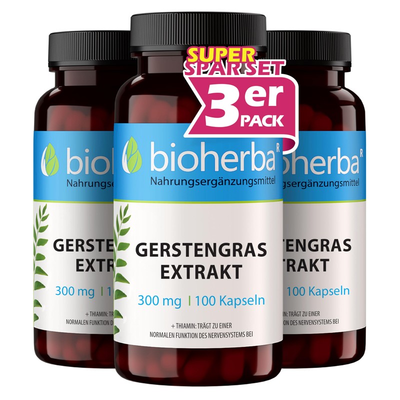 BIOHERBA Gerstengras Kapseln C 300 Stck 300?mg Extrakt (Hordeum vulgare L.) mit Vitamin B1 C Fr eine bewusste Ern?hrung von BIOHERBA PZN 19726142