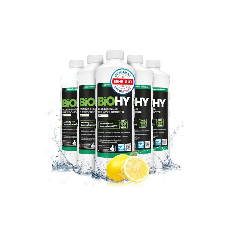 BiOHY Bodenreiniger für Wischroboter (6 x 1 Liter) | Reinigungsmittel Konzentrat für alle Wisch & Saugroboter mit Nass-Funktion | Schaumarm & Streifenfrei | Nachhaltiges 1:200 Konzentrat