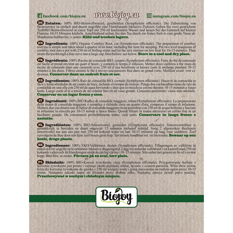 - Organic leg wave root, cut, natural root of the comfrey (leg root) in organic quality. Completely natural, only cut and gently dried, packed without additives.