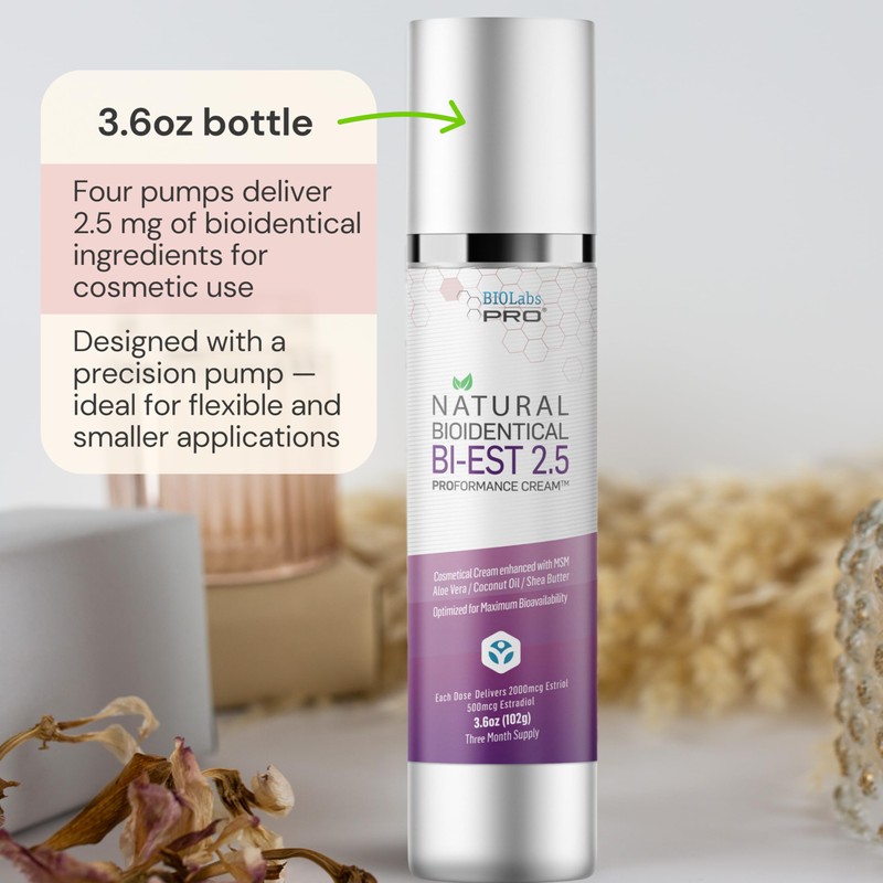 BIOLABS PRO Estro Cream BiEST 2.5 - Bioidentical Natural Solution - 2.5mg Per Dose - Three Month Supply - Luxury Bottle - 3.6oz