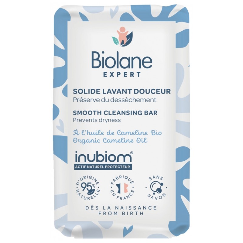 Biolane Expert Solide Lavant Douceur with its 75 g box is a gentle solid cleansing bar for baby that protects the skin from drying out. This soap with organic Camelina oil is ideal from birth.