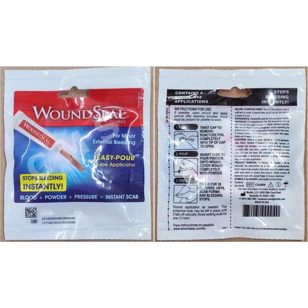 BIOLIFE WoundSeal MD Wound Powder – Quick-Acting Bleed Control with Tube Applicator (Pro Urgent QR), 4-Pack