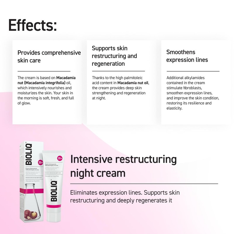 Bioliq - 35+ Intensive Restructuring Night Cream - Anti-Aging for Mimic Wrinkles, Macadamia Nut Oil, Restores Firmness and Elasticity - 50ml
