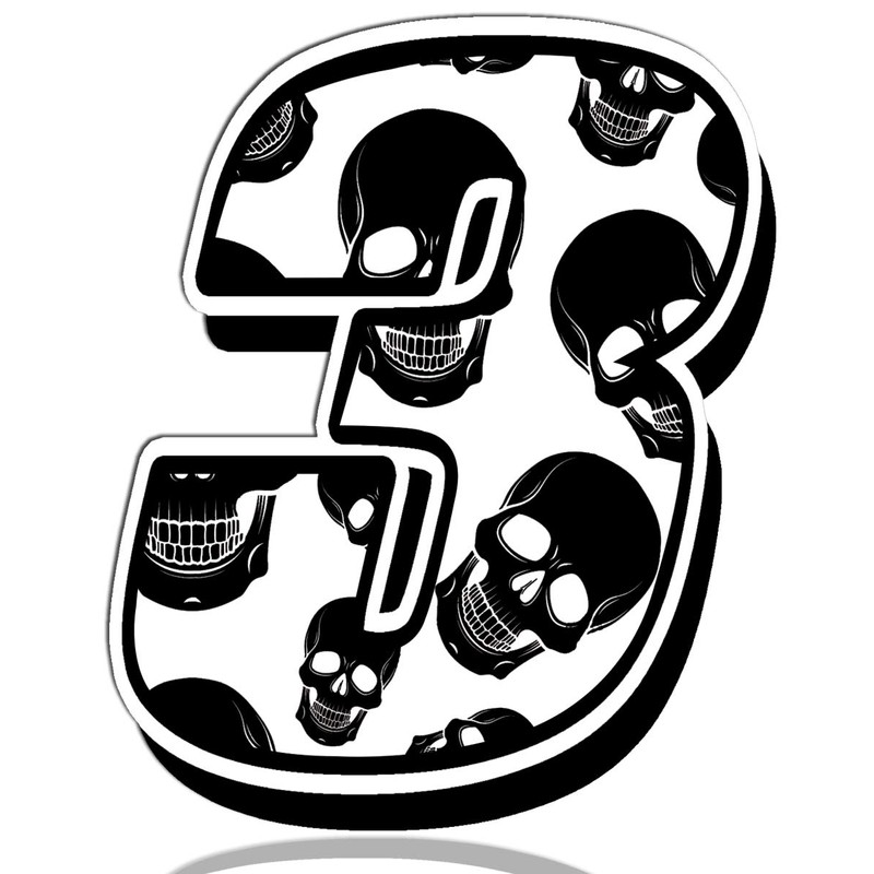 Biomar Labs® 1 x Vinyl Skull Sticker Decal Auto Moto Motocross Motosport Start Racing Number 3 Rally Race Car Bike Motorcycle Tuning N 333 Z