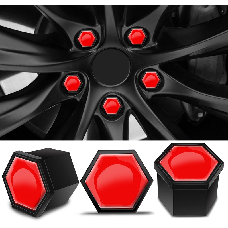 Biomar Labs 16pcs Wheel Nut Covers 4 pcs Locking Bolt Caps Universal Removal Tool Red Gloss 19mm LB 2