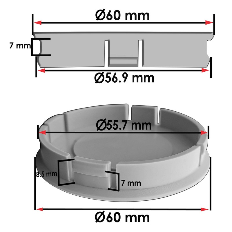 - ✔ Box contents: 4 hub caps with 60 mm outer diameter → (detailed dimensions please refer to the second picture)