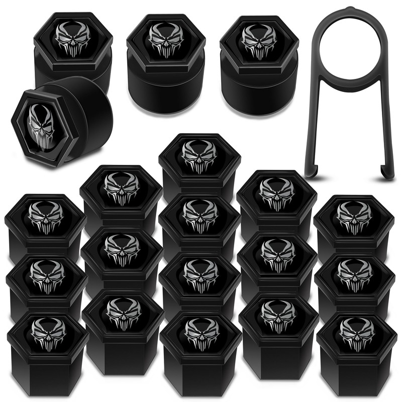 Biomar Labs Wheel Bolts Wheel Nuts Rim Lock Nuts Caps Wheel Nut Covers Wheel Bolt Caps Wheel Nut Caps Plastic Covers Universal Black Silver Skull 19 mm LB 17