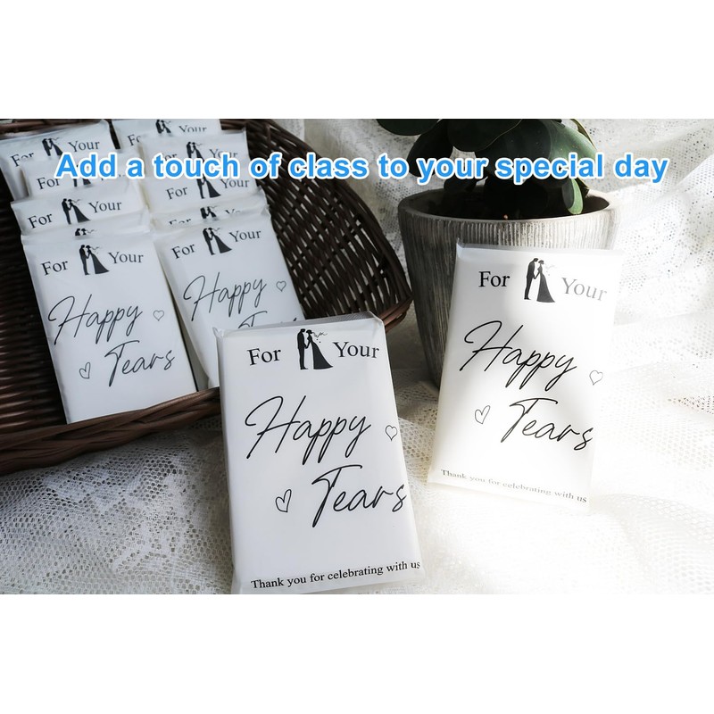 • Unique Design: our bulk wedding tissues are printed " for your Happy Tears'' words, we believe your special day should be flawless to the last detail; Wedding day tissues packs for guests add a touch of class to your celebration, and which is loved by our wedding gues