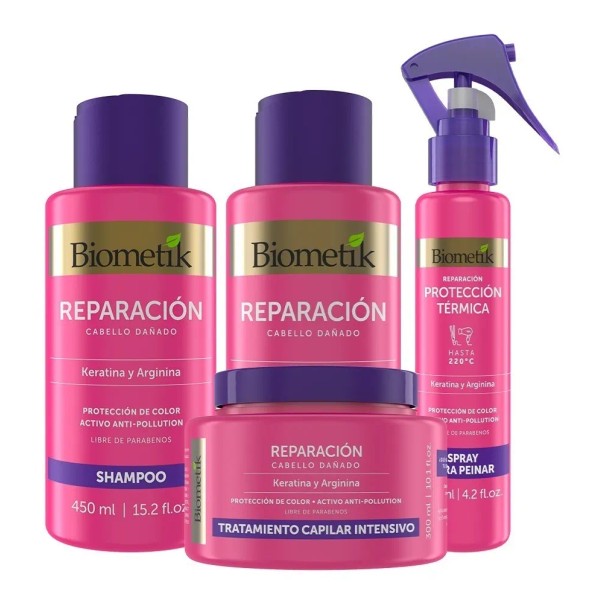 Palabras clave SEO: kit reparación capilar Biometik, tratamiento 4 en 1 para cabello, kit reparación cabello dañado, fortalecedor capilar, cuidado profundo cabello.