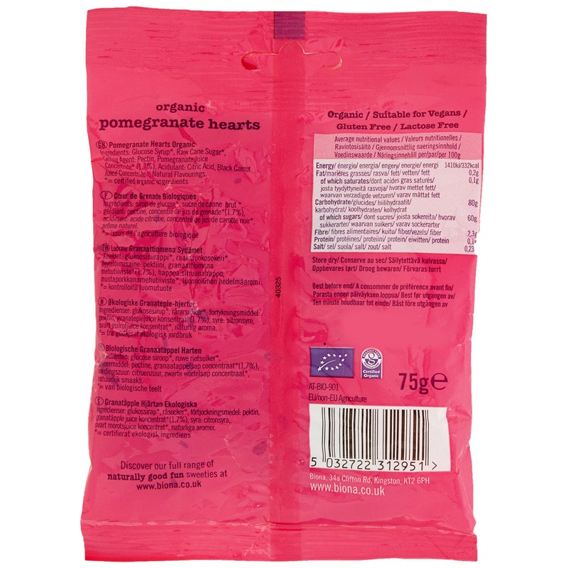 Biona Organic Pomegranate Hearts 75g (Pack of 5)
