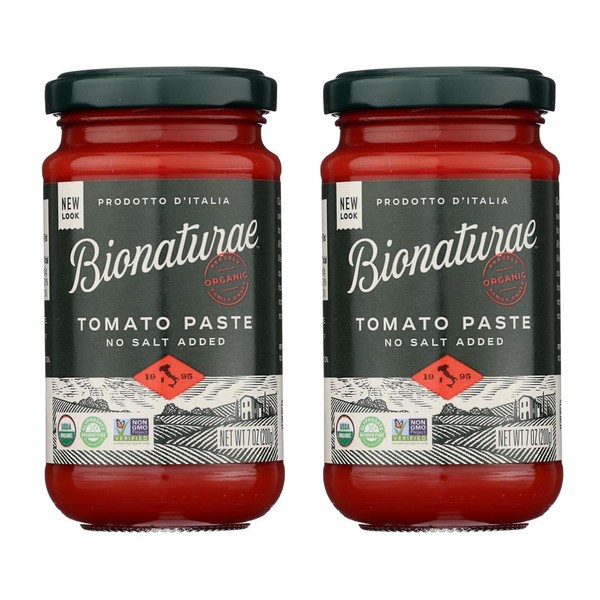 Bionaturae Organic Tomato Paste - No Salt, Tomato Paste in a Jar, Keto Friendly, Non-GMO, USDA Certified Organic, No Added Sugar, No Added Salt, Made in Italy - 7 Oz, 2 Pack