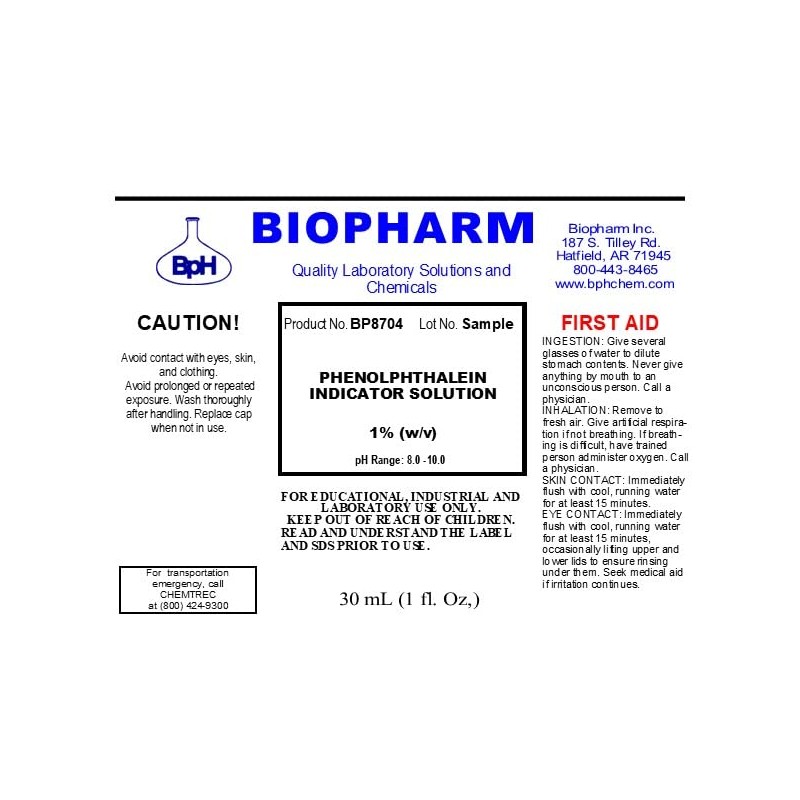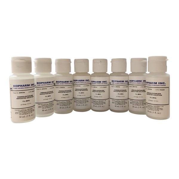 Biopharm Phenolphthalein pH Indicator 1% Solution 8-Pack: 830-mL (81-fl oz) in Plastic Dropper Bottles