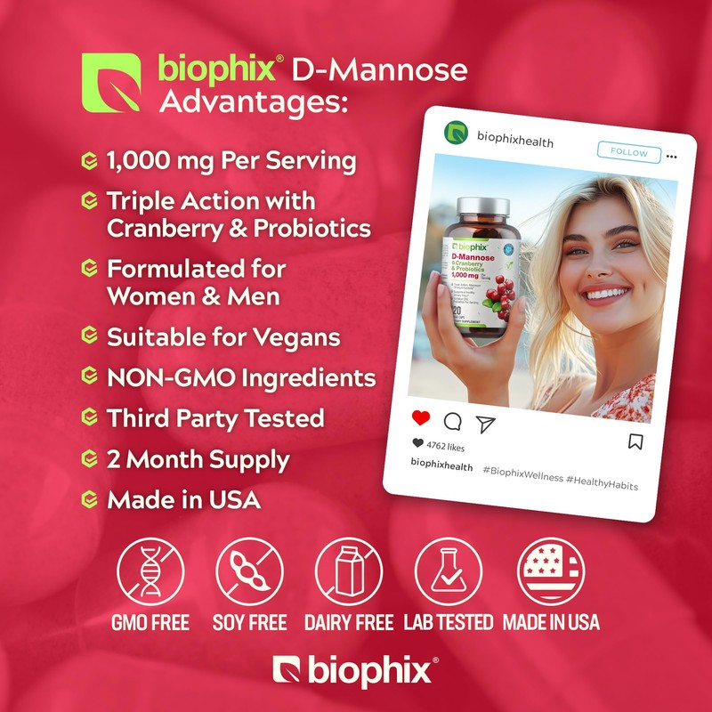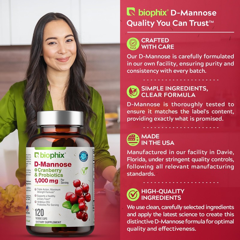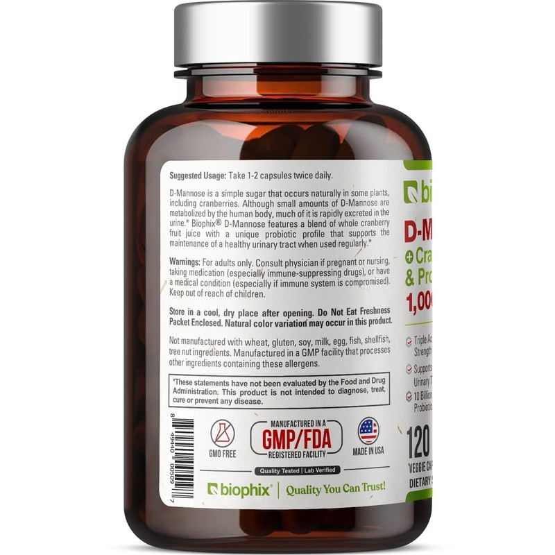 - BIOPHIX QUALITY YOU CAN TRUST: Manufactured in the USA under strict GMP standards, our d-mannose with cranberry supplement is third-party tested to ensure safety, quality, and effectiveness