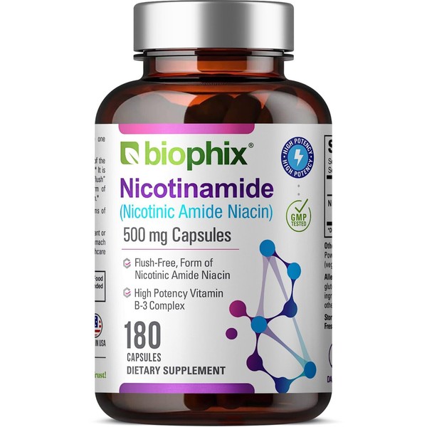 Biophix Nicotinic Amide Niacin (Nicotinamide) offers a viable solution for supporting healthy and delicate epidermal tissues as well as healthy aging.* Featuring 100 capsules per bottle, our formula is carefully crafted with a potent dose of 500 mg per capsule of elemental nicotinamide, a water-soluble amide of nicotinic acid that has a long heritage of use in dermatology.* Nicotinamide is also the catalyst for multiple molecular reactions throughout the body, and is converted into several coenzymes, including nicotinamide adenine dinucleotide (NAD) and nicotinamide adenine dinucleotide phosphate (NADP), both of which are essential to support healthy energy metabolism in the cells.* People who consistently supplement with Nicotinamide often remark of healthy energy levels after regular use.*