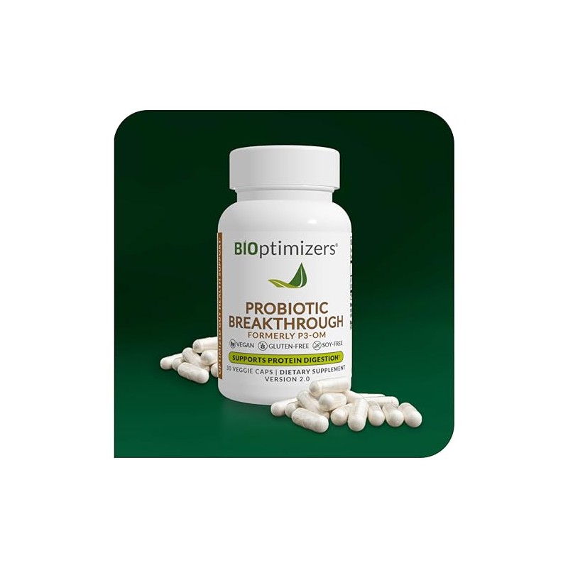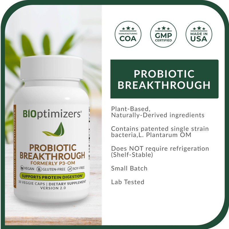 BiOptimizers BiOptimizers Probiotic Breakthrough, Proteolytic Prebiotics & Probiotics Supplement C Lactobacillus Plantarum OM for Immune, Bloating & Gut Relief Support, 30 Vegan Capsules