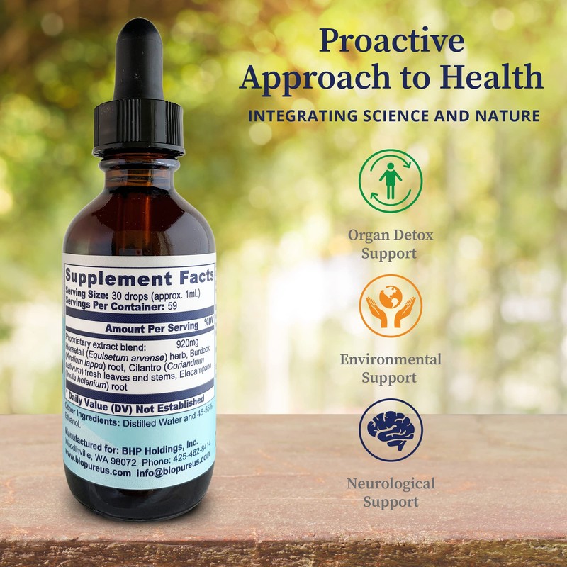 - SYNERGISTIC COMBINATION OF 4 HERBAL EXTRACTS: Elecampane, Cilantro, & Horsetail supports detox, neurological and lung function, and the addition of Burdock root nourishes the liver and optimizes toxicant elimination via the kidneys & bowels.*