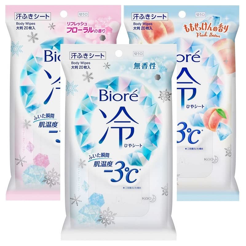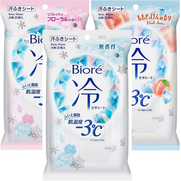 Biore Cooling Sheets, Refreshing Floral Scent, Bioré Cooling Sheets, Peach Soap Scent, Bioré Cooling Sheets, Unscented, 20 Each