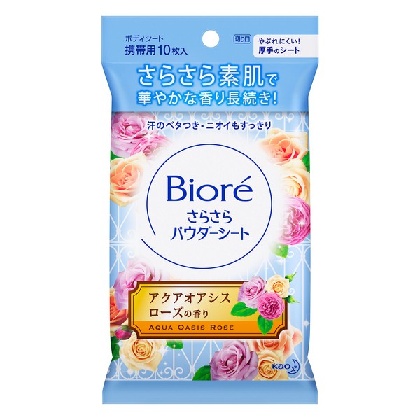 Biore Smooth Powder Sheets, Aqua Oasis Rose Scent, Portable, 10 Sheets
