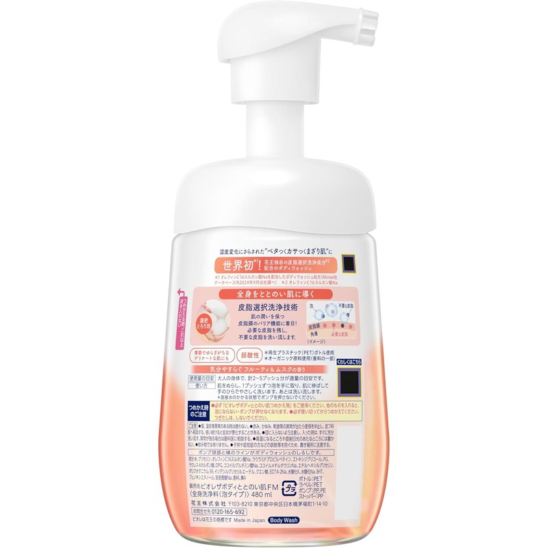 Biore The Body Soft Skin Foam Body Wash, Fruity & Musk Scent, 16.9 fl oz (480 ml)