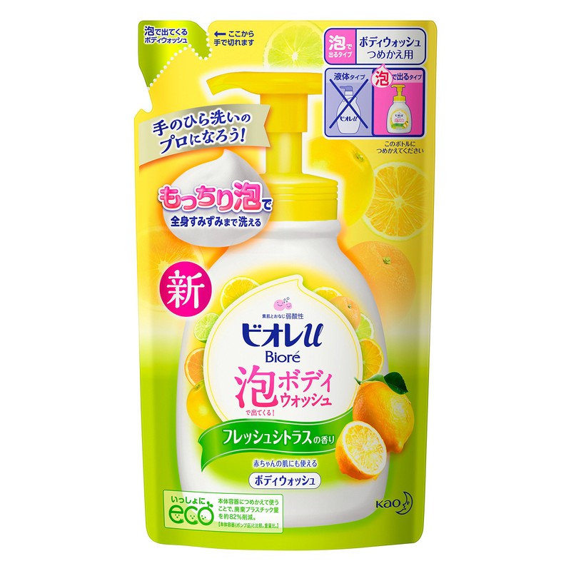 Biore U Bubble Body Wash 480 ml - Fresh Citrus Scent - Refill