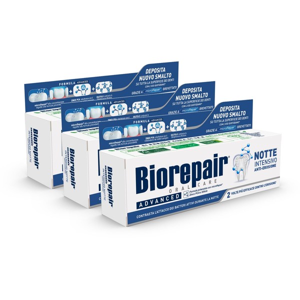 Biorepair Intense Night Toothpaste Protects and Repairs Enamel from Attack of Active Bacteria at Night - Pack of 3