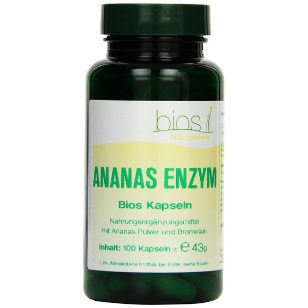 - Ananas Enzym Bios Kapseln enthalten 250 mg Bromelain und 307 mg Ananas Pulver.
