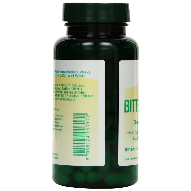 - Bitter substance capsules contain fennel extract, peppermint leaf extract, yarrow extract, caraway powder and anise extract.