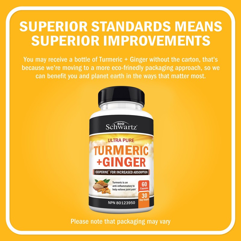 BioSchwartz Organic Turmeric Curcumin and Ginger - 95% Standardized Curcuminoids with BioPerine Black Pepper Extract for Ultra High Absorption - Natural Joint Support Supplement - Gluten-Free - 60 Capsules