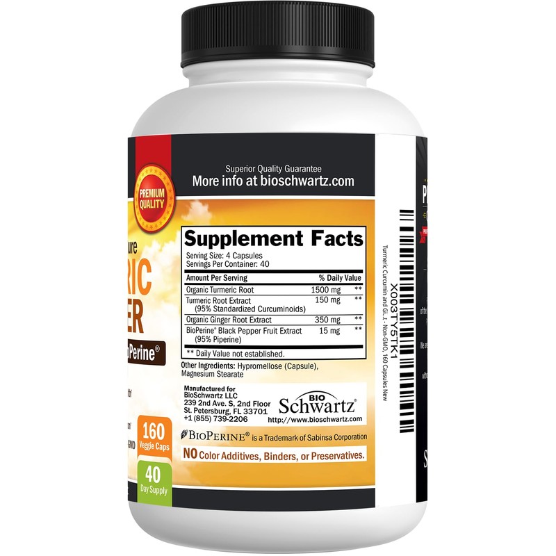 BioSchwartz Turmeric Curcumin & Ginger Supplement 2000mg with 95% Curcuminoids & BioPerine Black Pepper - Non-GMO, Gluten-Free Vegan - with Organic Turmeric & Ginger for Joint & Immune Support - 160 Capsules