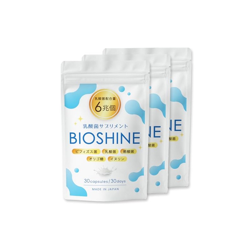 【クリニック共同開発】 BIOSHINE ビフィズス菌 酪酸菌 サプリ 乳酸菌6兆個 乳酸菌37種 ビフィズス菌10種 酪酸菌3種国内製造 菌活 オリゴ糖 イヌリン ナットウキナーゼ (90日分)