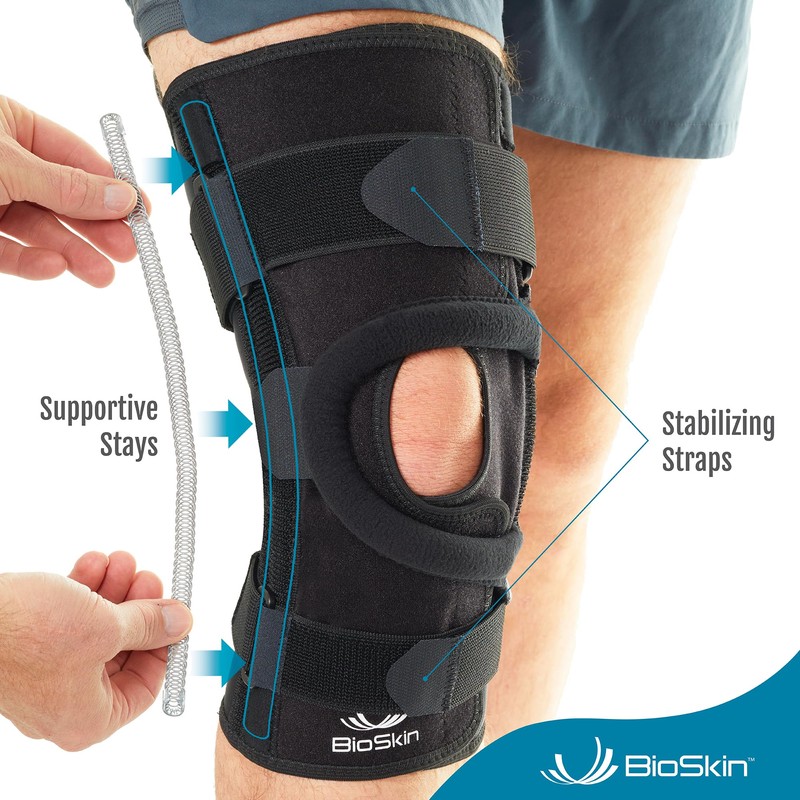 - TRUSTED BY PROFESSIONALS - Over 40 professional sports teams trust BioSkin to keep their athletes functioning at the highest possible level. Join the pros and get relief from knee pain with our wraparound patella stabilizer knee brace.