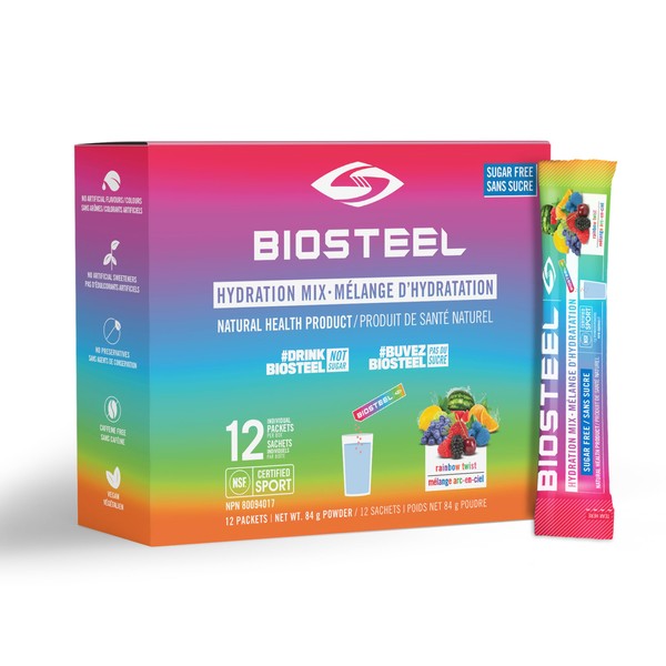 BioSteel Hydration Mix, Great Tasting Hydration with Zero Sugar, and No Artificial Flavours or Preservatives, Rainbow Twist Flavour, 12 Single Serving Packets
